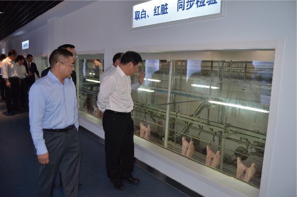鮑市長(cháng)一行首先通過(guò)參觀(guān)廊參觀(guān)了公司生產(chǎn)現場(chǎng)。鄭寶振副董事長(cháng)對洛陽(yáng)市鮑市長(cháng)一行蒞臨洛陽(yáng)正大指導表示歡迎,并對洛陽(yáng)市政府一直以來(lái)對正大集團在洛陽(yáng)項目的支持表示感謝。在公司三樓會(huì )議室,喬光斌總經(jīng)理匯報了洛陽(yáng)正大生產(chǎn)經(jīng)營(yíng)、項目建設規劃、食品安全管理、市場(chǎng)運作模式、公司發(fā)展愿景等相關(guān)工作情況;鄭寶振副董事長(cháng)表示:洛陽(yáng)正大食品有限公司是集團投資建設的***家生豬屠宰和豬肉深加工項目,集團對該項目高度重視,利用正大集團優(yōu)勢,圍繞洛陽(yáng)正大100萬(wàn)頭生豬屠宰項目,在洛陽(yáng)地區打造從玉米種植、飼料加工、良種豬培育、商品豬養殖、屠宰分割、肉制品精深加工、冷鏈物流、連鎖專(zhuān)賣(mài)為一體的全產(chǎn)業(yè)鏈發(fā)展模式,確保產(chǎn)品的安全可追溯,下一步要高標準建設洛陽(yáng)正大深加工項目,并將在洛陽(yáng)周邊偃師、宜陽(yáng)、伊川、孟津等區域拓展安全豬源養殖基地,洛陽(yáng)正大食品有限公司向洛陽(yáng)市民提供安全、健康、營(yíng)養、美味的正大食品,希望市政府在洛陽(yáng)正大深加工項目建設和生豬養殖建設方面給予支持和幫助。