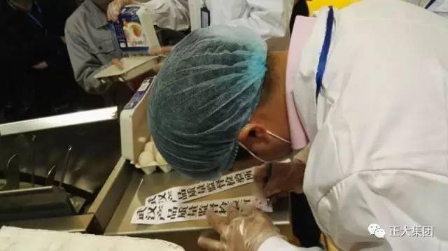 現場(chǎng),武漢產(chǎn)品質(zhì)量監督檢驗所方惠文主任、彭勇勝先生對正大雞蛋進(jìn)行現場(chǎng)抽檢。