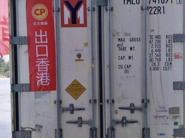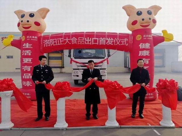 洛陽(yáng)正大食品出口香港的首車(chē)肉制品,